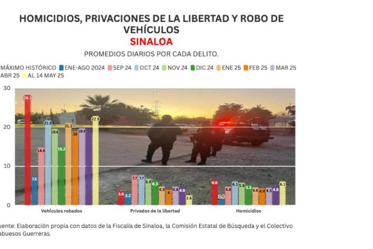 Hasta ahora, las tres violencias más relevantes para Sinaloa son los homicidios, las privaciones de la libertad y el robo de vehículos.