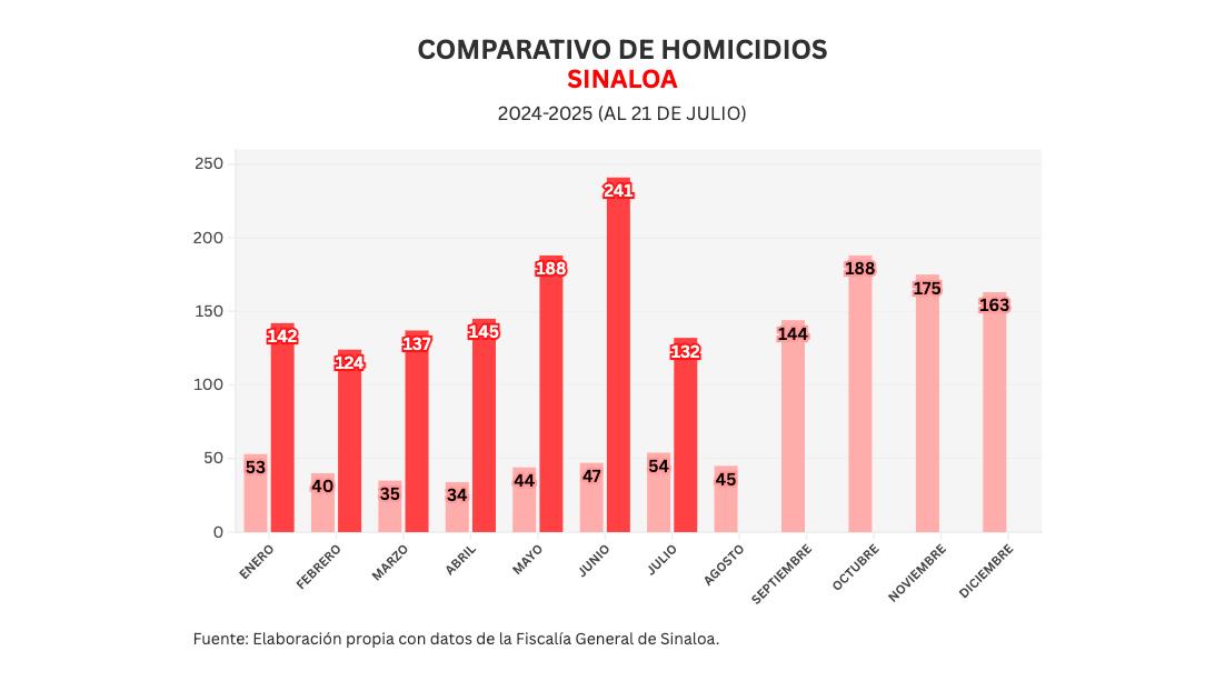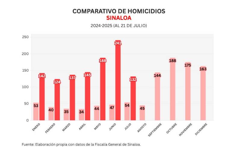 Con estos datos, la proyección de asesinatos para julio de 2025 es de 195.