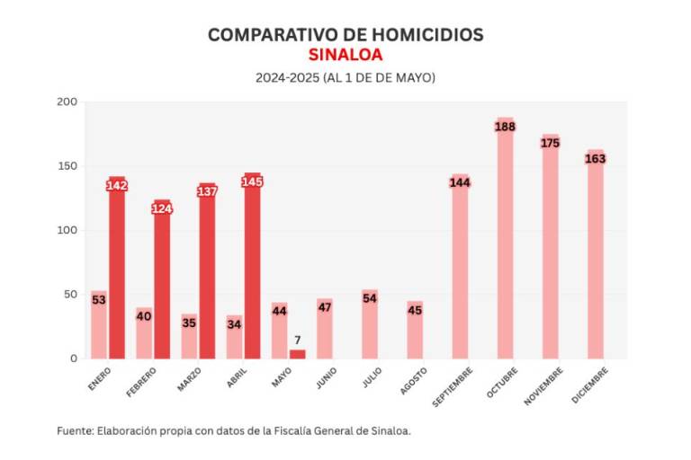 También Noroeste lleva un conteo mensual de acuerdo a lo registrado por el Secretariado Ejecutivo del Sistema Nacional de Seguridad Pública (SESNSP), en lo que va de mayo se han registrado 7 homicidios.