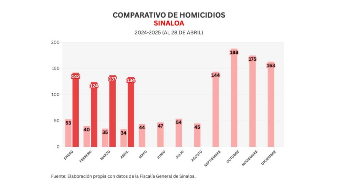 También Noroeste lleva un conteo mensual de acuerdo a lo registrado por el Secretariado Ejecutivo del Sistema Nacional de Seguridad Pública (SESNSP), en lo que va de abril se han registrado 134 homicidios para un promedio de 4.8 diarios.
