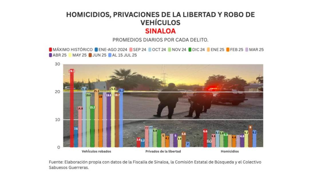 Hasta ahora, las tres violencias más relevantes para Sinaloa son los homicidios, las privaciones de la libertad y el robo de vehículos.