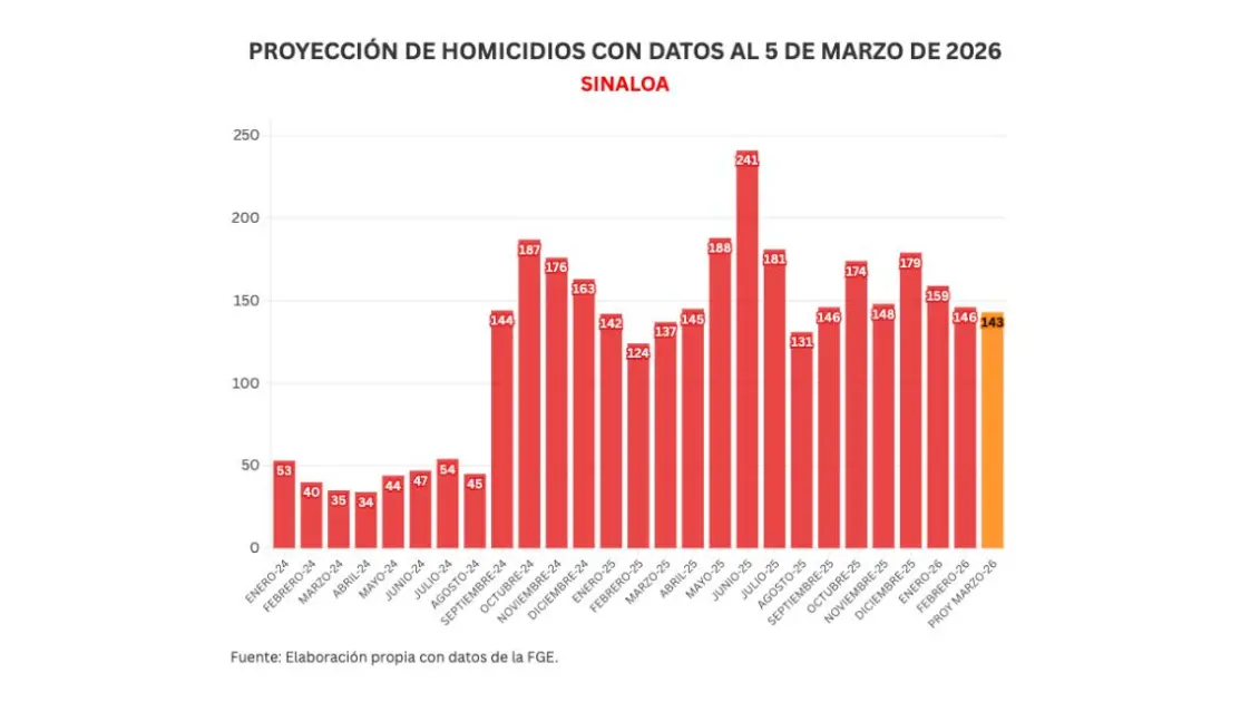 Con estos datos, marzo se proyecta para cerrar con 143 homicidios.