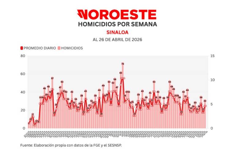 Noroeste calcula un promedio móvil diario de 7 días para medir con mayor sensibilidad la evolución del homicidio en Sinaloa. Al día de hoy, el promedio ascendió a 4.6 asesinatos diarios.