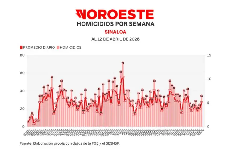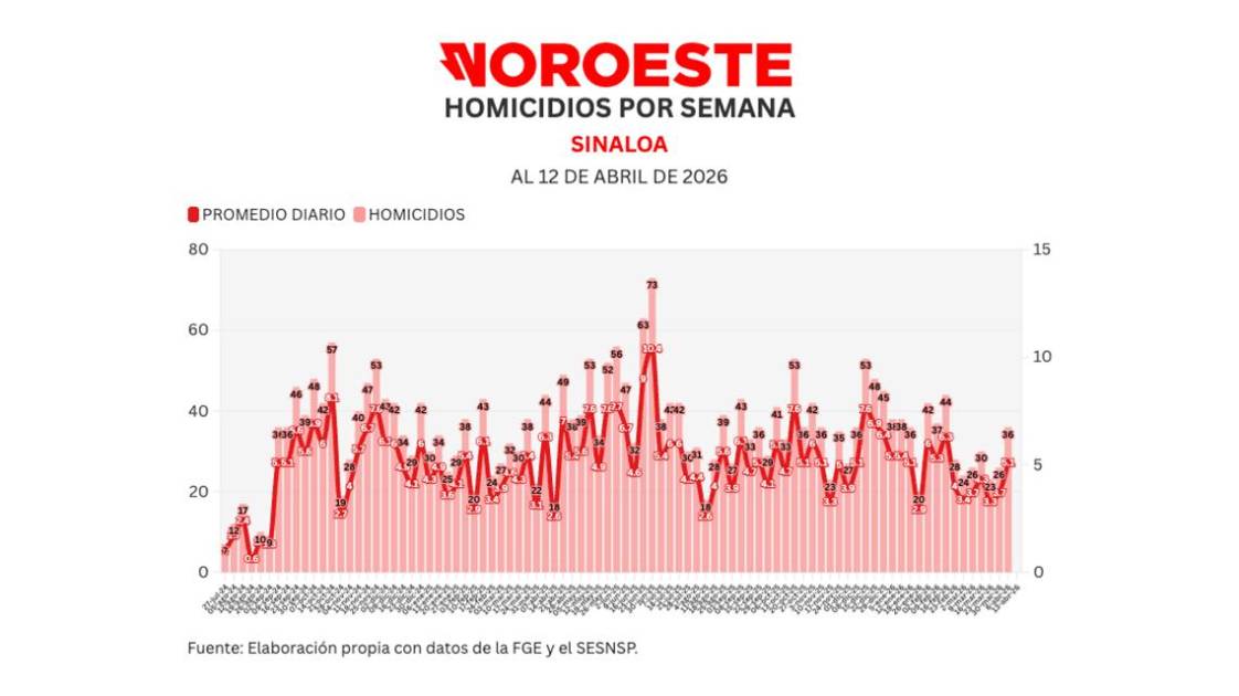 También Noroeste lleva un conteo mensual de acuerdo a lo registrado por el Secretariado Ejecutivo del Sistema Nacional de Seguridad Pública (SESNSP), en abril se han registrado 52 homicidios para un promedio de 4.3 diarios.
