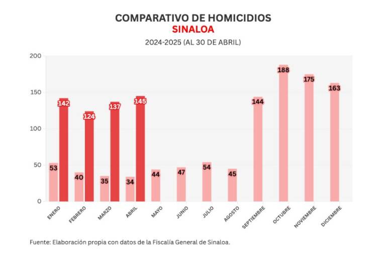También Noroeste lleva un conteo mensual de acuerdo a lo registrado por el Secretariado Ejecutivo del Sistema Nacional de Seguridad Pública (SESNSP), en lo que va de abril se han registrado 145 homicidios para un promedio de 4.8 diarios.