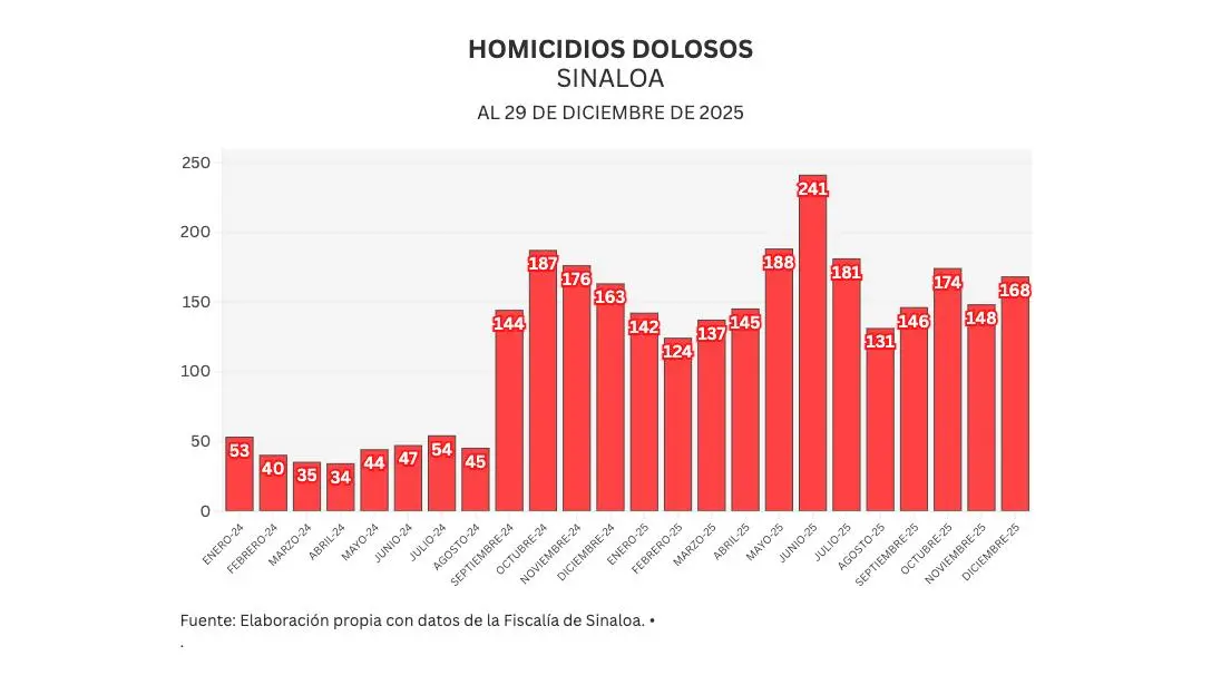 Con estos datos, diciembre se proyecta con 180 homicidios.