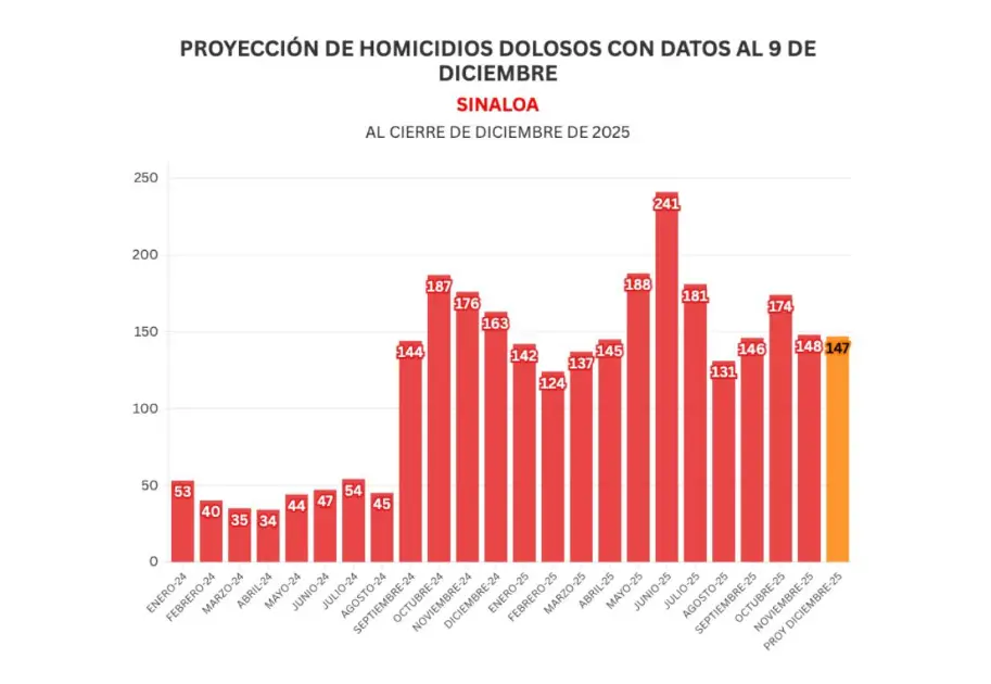 Con estos datos, diciembre se proyecta con 147 homicidios.