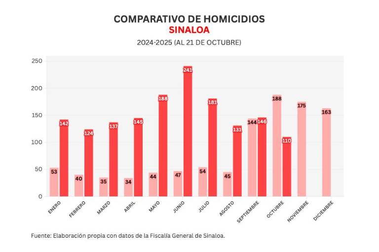 Desde que la disputa entre los Guzmán y los Zambada comenzó y que las autoridades no han podido contener, Sinaloa acumula 2 mil 197 asesinatos y 2 mil 133 personas privadas de la libertad.