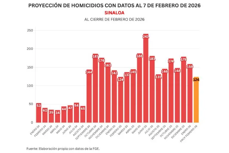 Con estos datos, febrero proyecta cerrar con 124 homicidios.