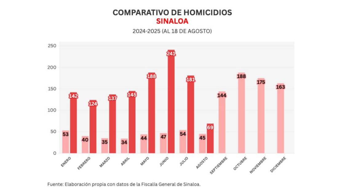 Este lunes 18 de agosto se registraron cinco homicidios en Sinaloa, con lo que el estado perdió el saldo blanco del fin de semana. En Culiacán, se localizó a una persona asesinada por la carretera Culiacán–Eldorado, otra más en la sindicatura de Aguaruto y una mujer asesinada en la colonia Los Huizaches.