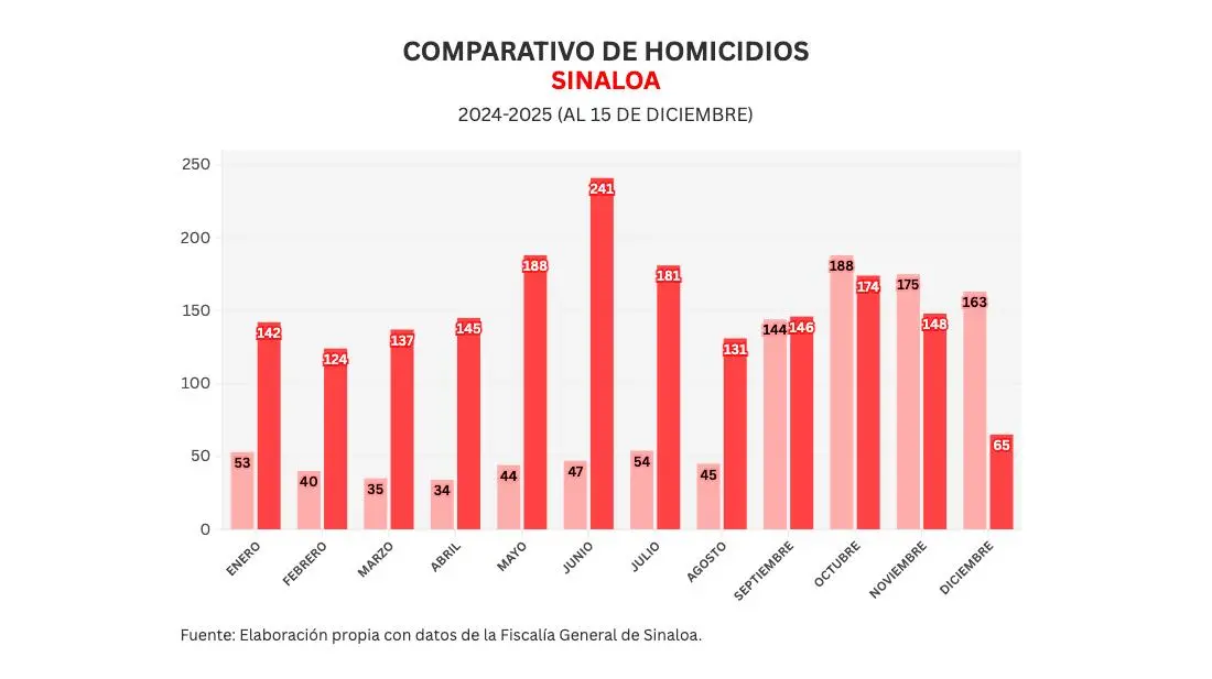 Acá puedes ver un comparativo de cómo va el mes de diciembre con respecto a noviembre pasado, así como respecto del promedio enero-agosto de 2024 (previo a la ola de violencia) y de su máximo histórico.