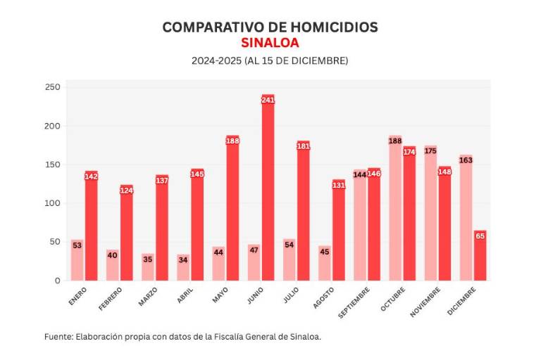También Noroeste lleva un conteo mensual de acuerdo a lo registrado por el Secretariado Ejecutivo del Sistema Nacional de Seguridad Pública (SESNSP), en noviembre se han registrado 65 homicidios para un promedio de 4.3 diarios.