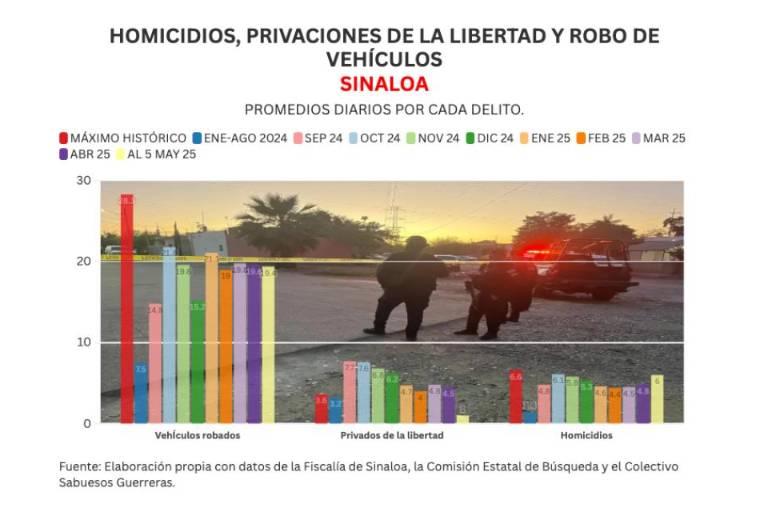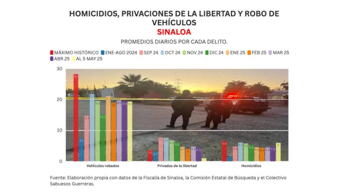 Hasta ahora, las tres violencias más relevantes para Sinaloa son los homicidios, las privaciones de la libertad y el robo de vehículos.