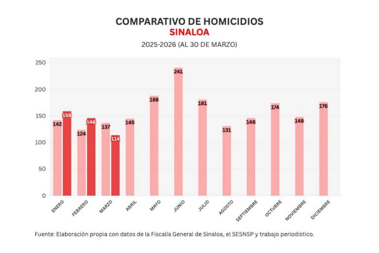 También Noroeste lleva un conteo mensual de acuerdo a lo registrado por el Secretariado Ejecutivo del Sistema Nacional de Seguridad Pública (SESNSP), en marzo se han registrado 114 homicidios para un promedio de 3.8 diarios.