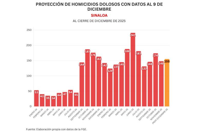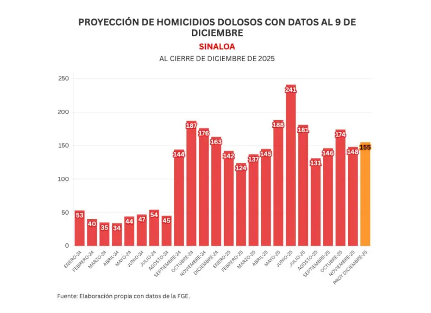 Con estos datos, diciembre se proyecta con 155 homicidios.