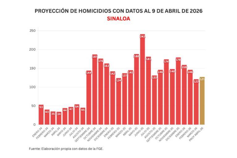 También Noroeste lleva un conteo mensual de acuerdo a lo registrado por el Secretariado Ejecutivo del Sistema Nacional de Seguridad Pública (SESNSP), en abril se han registrado 38 homicidios para un promedio de 4.2 diarios.