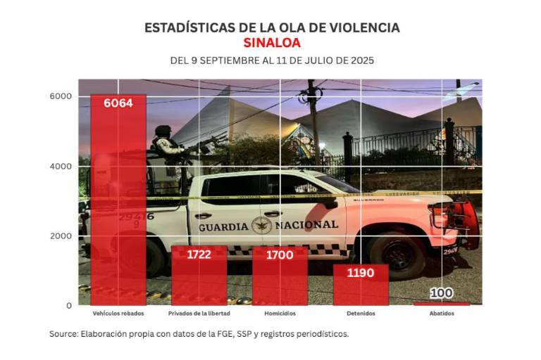Desde que la disputa entre los Guzmán y los Zambada comenzó y que las autoridades no han podido contener, Sinaloa acumula mil 700 asesinatos y mil 717 personas privadas de la libertad.