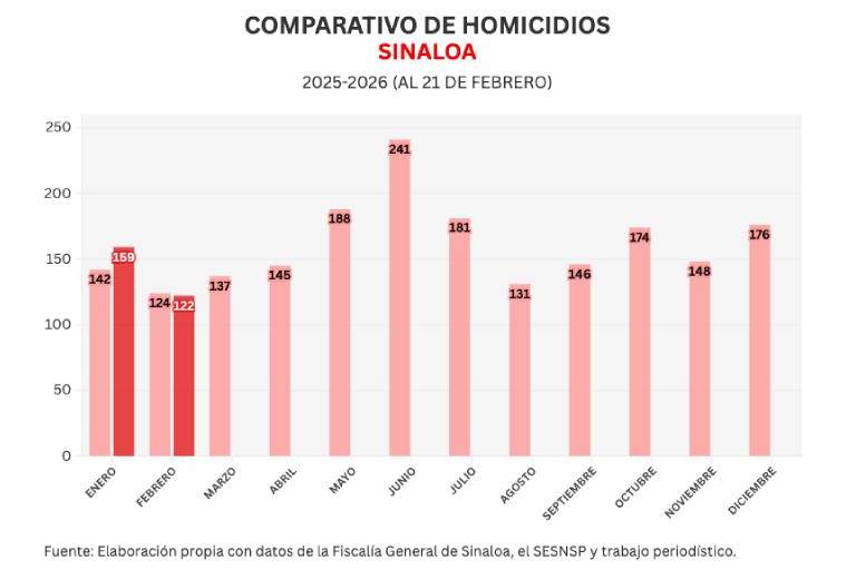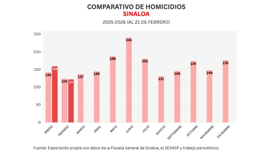 Con estos datos, febrero proyecta cerrar con 163 homicidios. Y de acuerdo con los datos acumulados de enero y febrero de este año, 2026 ya proyecta como un peor año que 2025 en materia de homicidios.