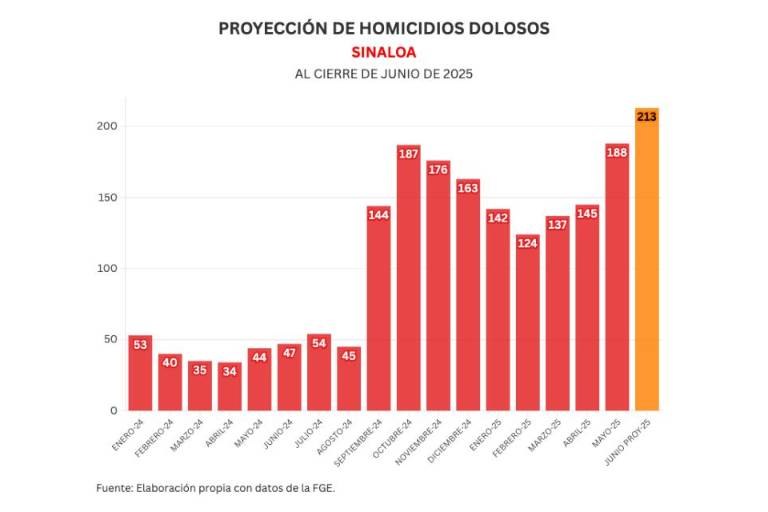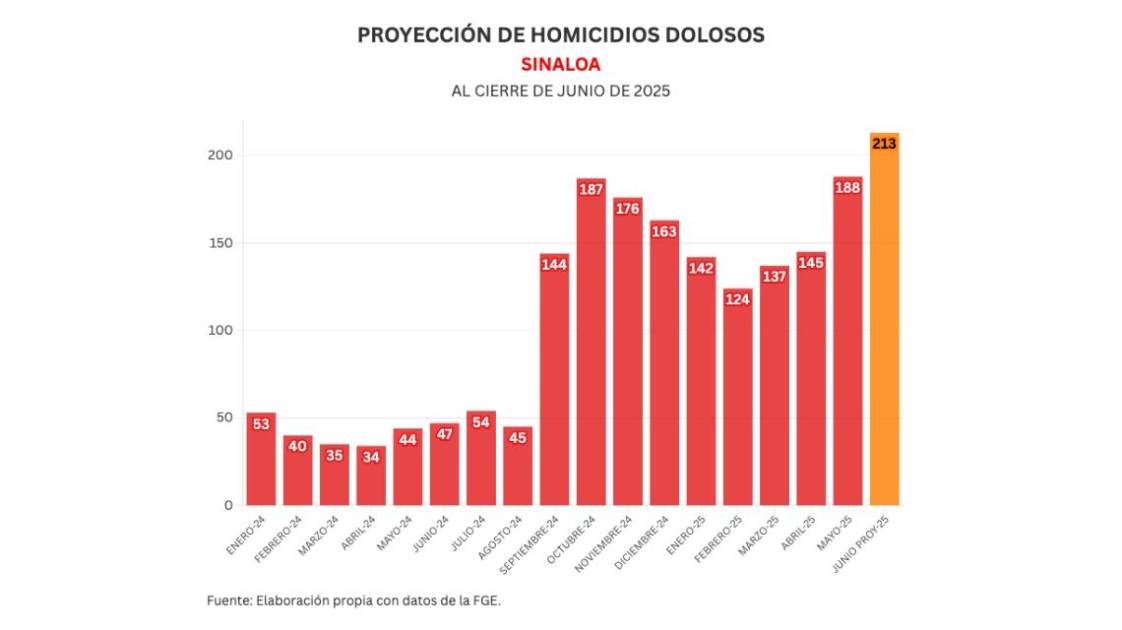 Con estos datos, la proyección de homicidios para el mes de junio es de 213.