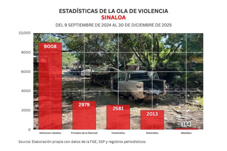 Hasta ahora, las tres violencias más relevantes para Sinaloa son los homicidios, las privaciones de la libertad y el robo de vehículos.