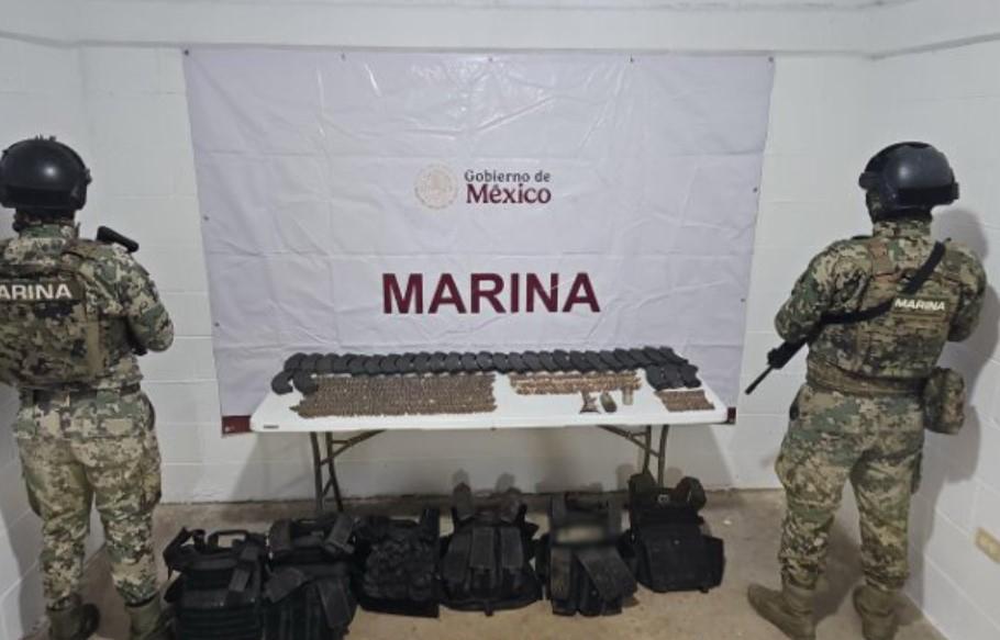 En el lugar, las fuerzas federales incautaron 686 cartuchos de diversos calibres, 30 cargadores para armas de fuego, así como seis chalecos tácticos y 11 placas balísticas. También fueron halladas dos granadas que formaban parte del material bélico almacenado en el asentamiento.