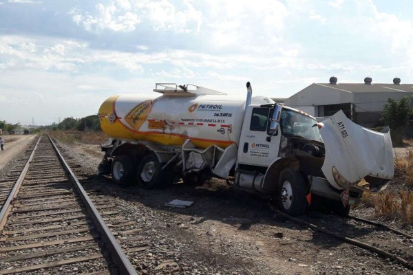 CULIACÁN.- Con lesiones leves resultó el conductor de una pipa, luego de que la unidad que conducía fue arrollada por el tren, en las inmediaciones del campo El Diez.