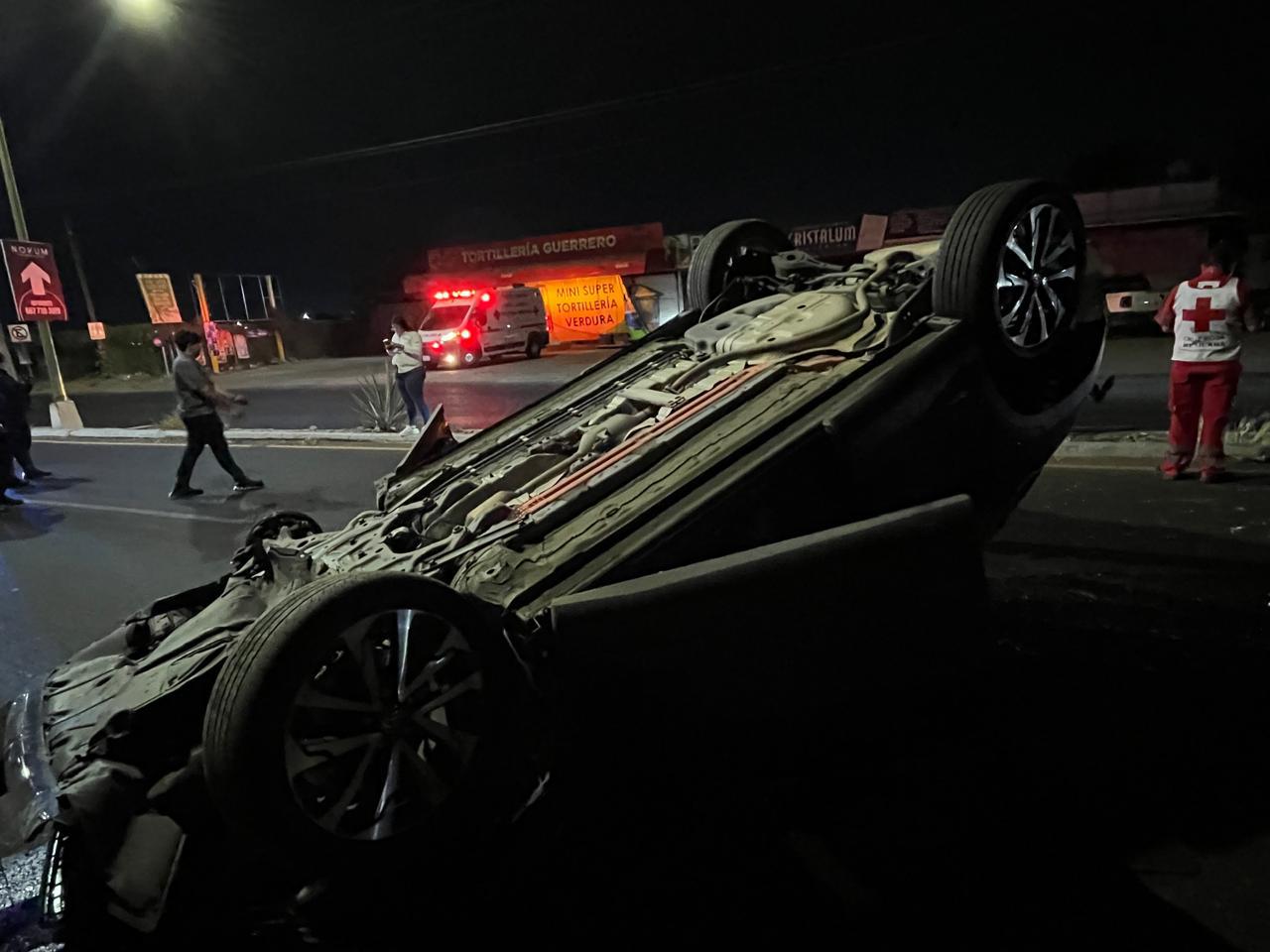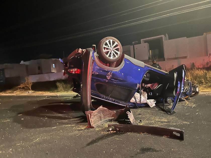 Jóvenes se vuelcan en vehículo tras chocar contra poste en Valle Alto, en Culiacán