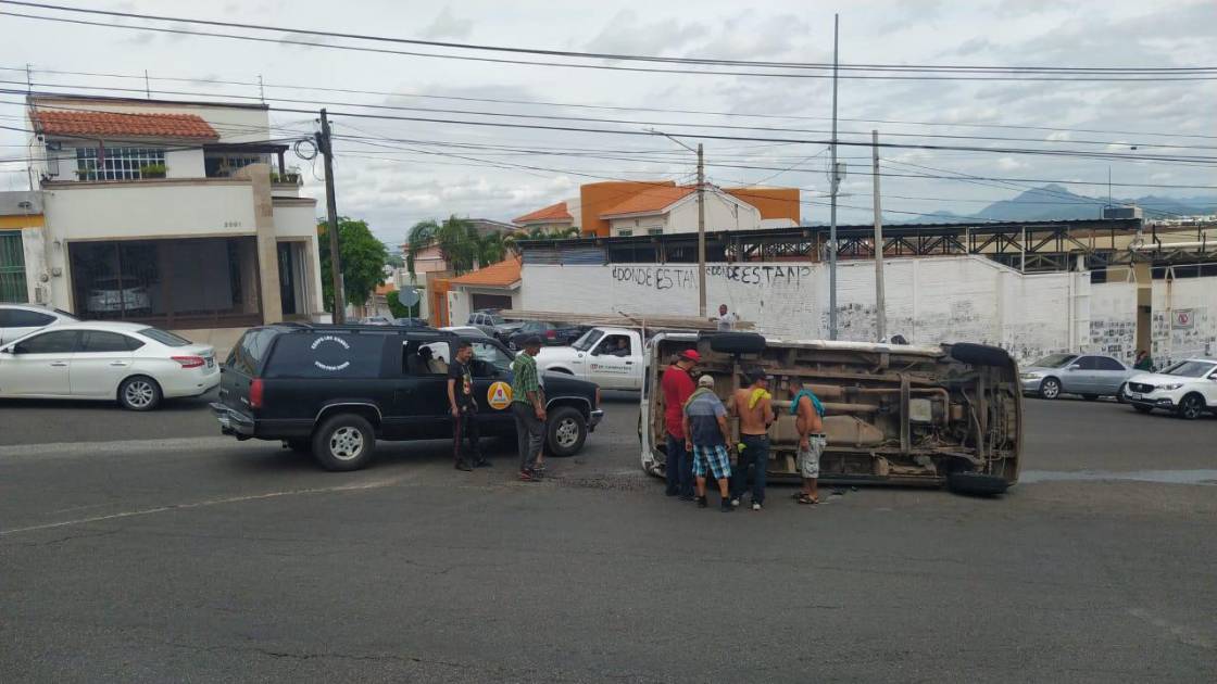 Le fallan los frenos a camioneta de anexo y vuelca en Culiacán
