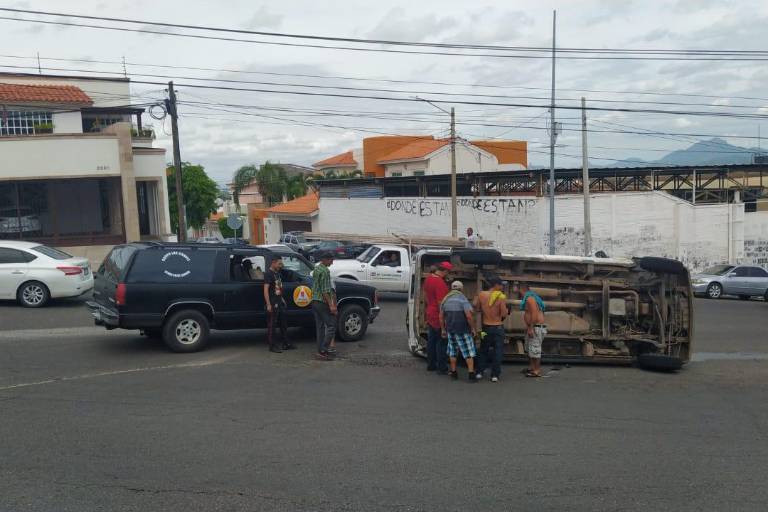 CULIACÁN._ Por una falla mecánica, una camioneta de un centro de rehabilitación terminó volcada en la colonia Nuevo Culiacán.