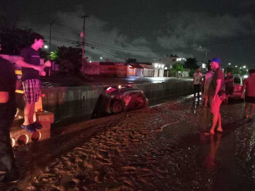 Al parecer el vehículo fue arrastrado por el agua que se acumuló en las calles por las lluvias.