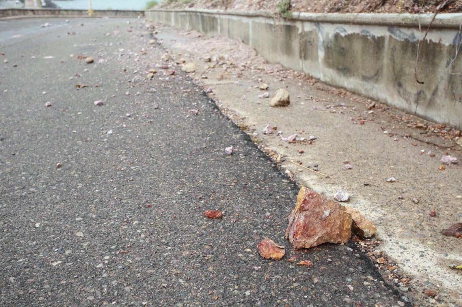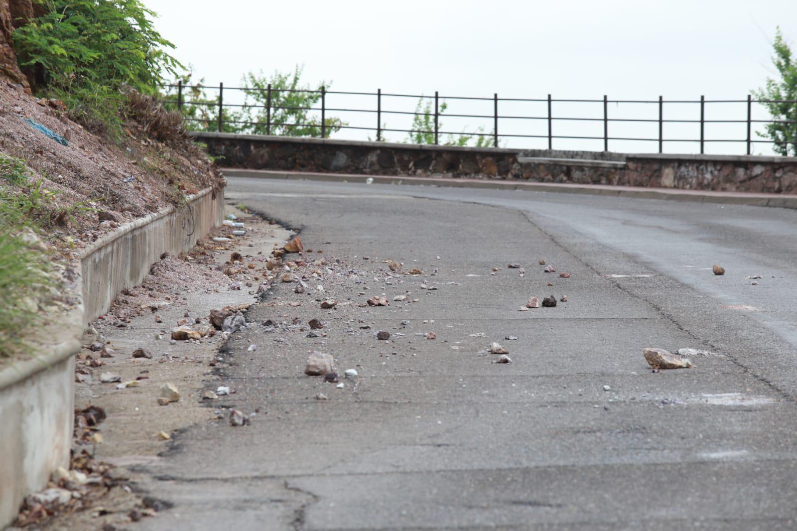 Tras las precipitaciones, hubo desprendimientos rocosos sobre el Paseo del Centenario, en la glorieta del corazón