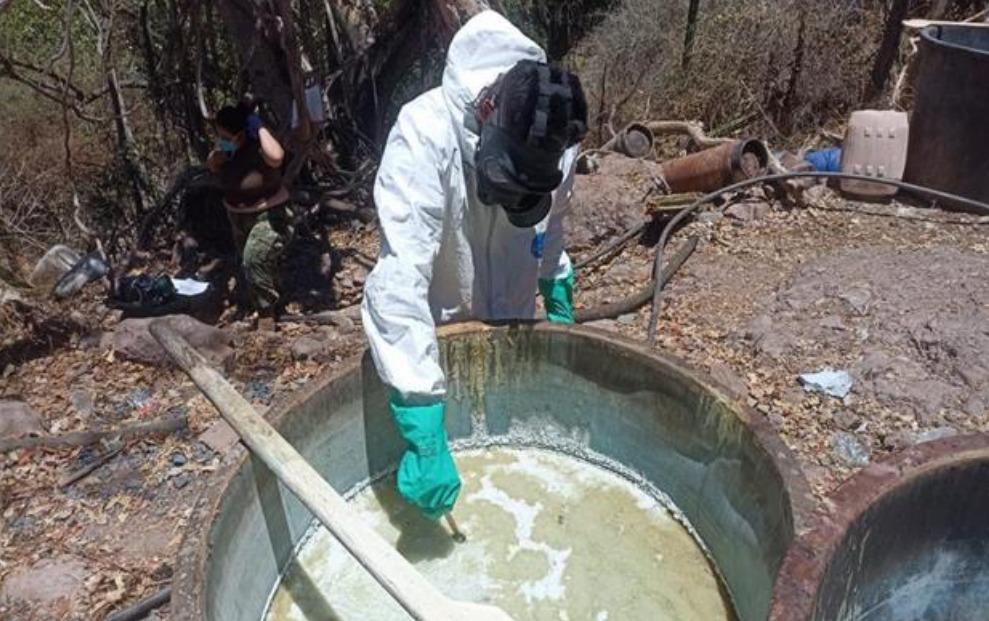 El laboratorio clandestino que funcionaba para la elaboración de drogas sintéticas fue localizado en operativos efectuados por elementos de la Armada de México, en coordinación con personal de la Secretaría de Seguridad Pública del Estado de Sinaloa.