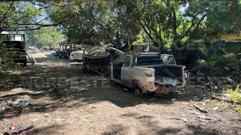 Posteriormente, en la comunidad de Navolatillo, se ubicó un predio baldío utilizado para el desmantelamiento de vehículos. En el lugar, donde no se encontraron civiles, se procedió a la inspección. El resultado fue el hallazgo de 39 unidades de diversas marcas y características, todas con reporte de robo. Entre estas, se encontraban las cinco que estaban registradas como robadas en Estados Unidos.