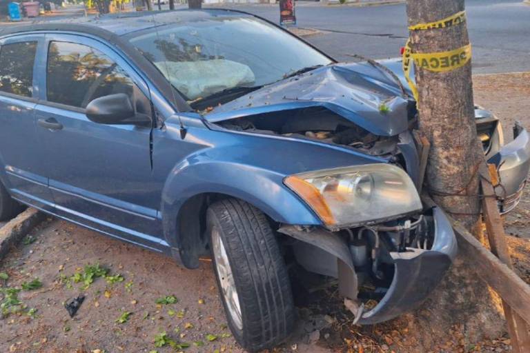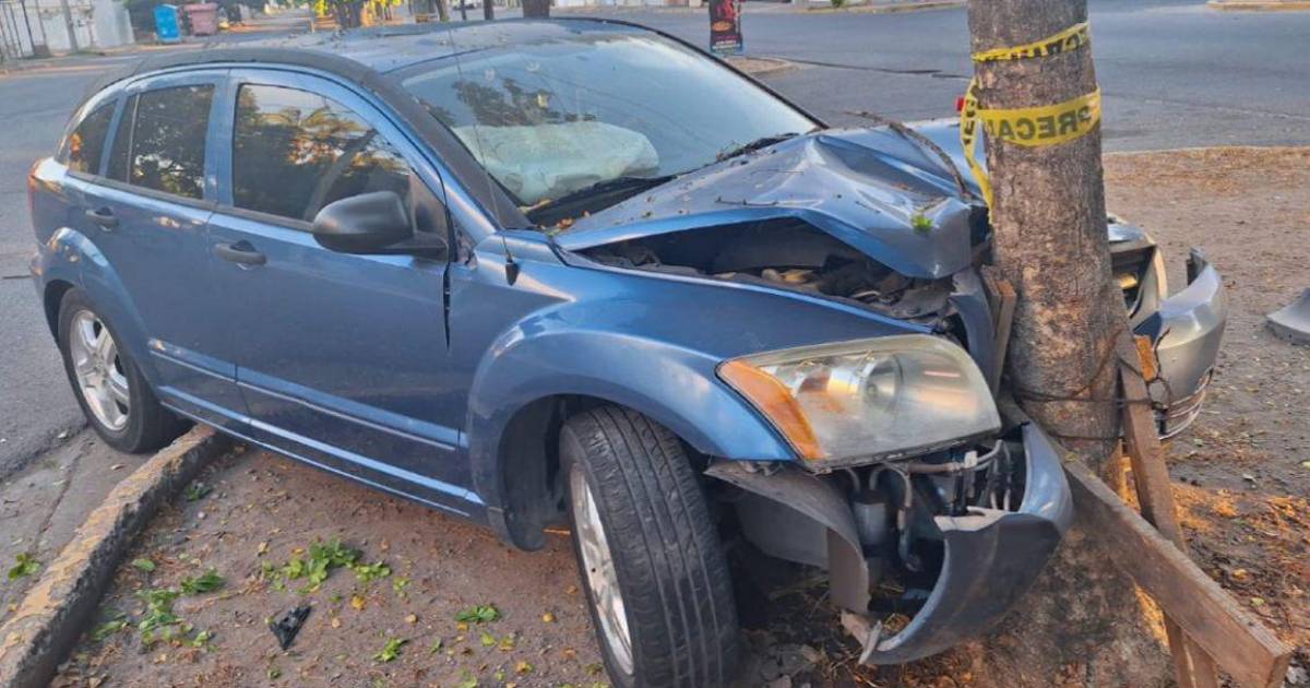 La mañana de este domingo fue localizado un auto en estado de abandono e impactado contra un árbol sobre un camellón en La Campiña, Culiacán.