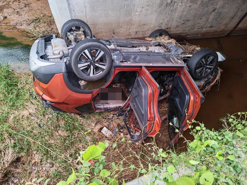 Se presume que la camioneta Nissan XTremer salió de la carretera y cayó a un arroyo crecido donde la corriente lo arrastró hasta dejarla volcada debajo de la carpeta asfáltica. Los tres pasajeros que viajaban en la unidad murieron al quedar atrapados y sumergidos bajo el agua.