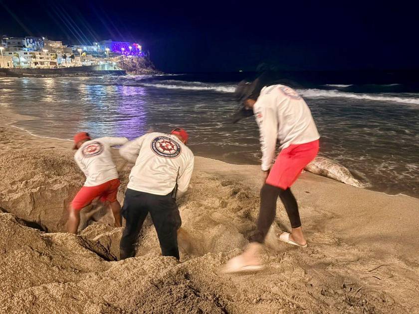 De acuerdo a un comunicado, con el objetivo de evitar una mala impresión entre los bañistas, así como posibles olores y afectaciones a la imagen del destino turístico, el comandante del grupo de salvavidas, Gustavo Espinoza, informó que se procedió a sepultar el cuerpo del mamífero marino en la zona.