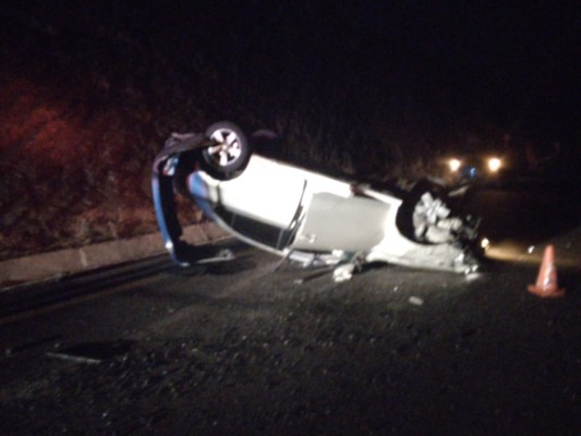 Mazatlán.- Volcado sobre su toldo y abandonado sobre la carretera fue localizado un automóvil de modelo reciente en una curva que se ubica a escasos metros de la autopista Mazatlán - Culiacán, durante la noche de este martes.