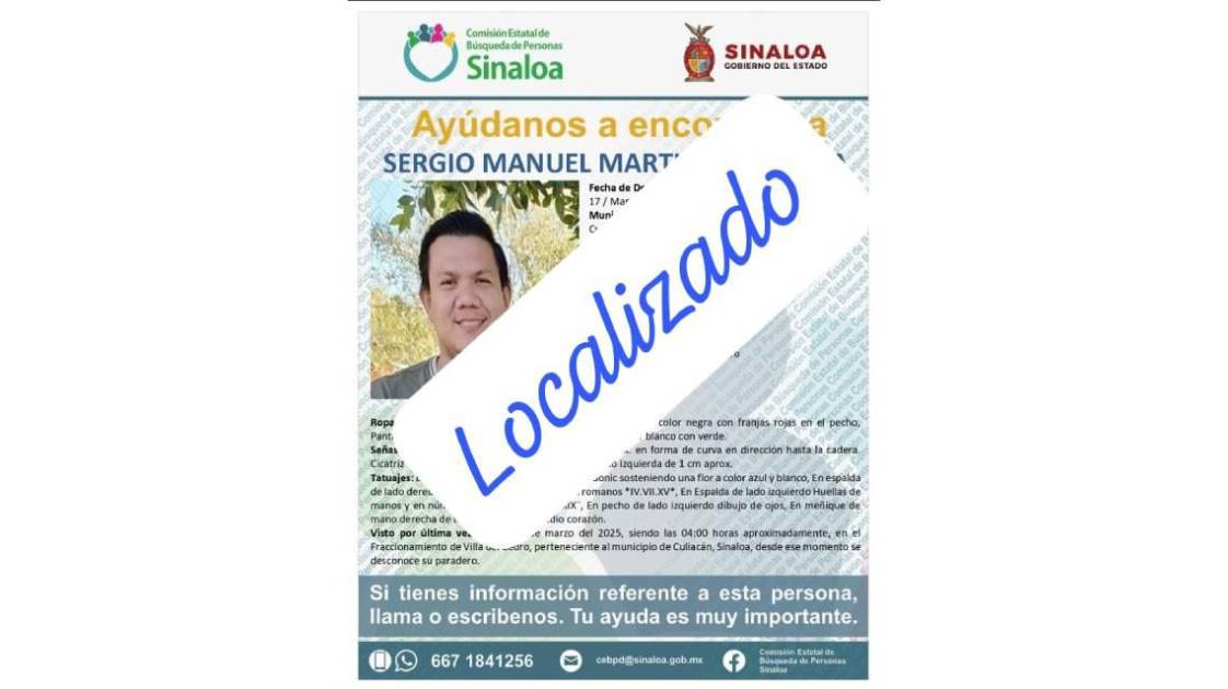 La familia del hombre de 30 años confirmó a Noroeste que el hombre fue localizado con vida después de estar privado de la libertad por un día, plagio por el que la Comisión Estatal de Búsqueda activó una ficha para dar con su paradero.
