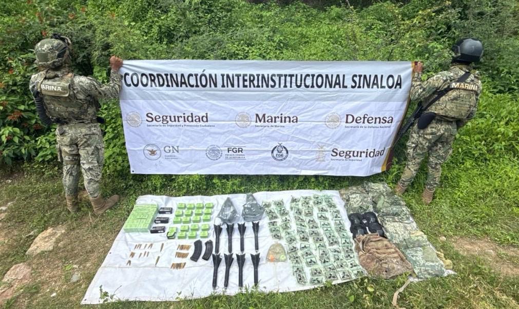 Marina asegura explosivos, armas y droga durante operativos en Concordia y Culiacán