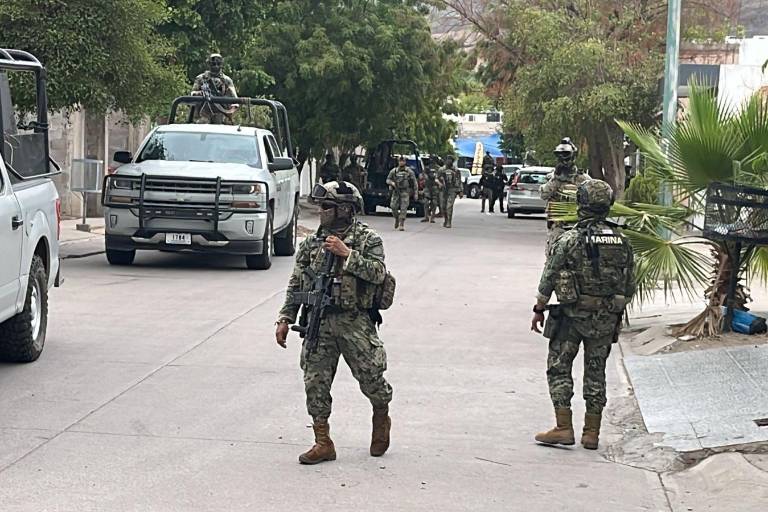 CULIACÁN. _ Elementos de la Secretaría de Marina desplegaron un operativo de seguridad durante la tarde de este viernes en la colonia Alturas del Sur, en Culiacán.