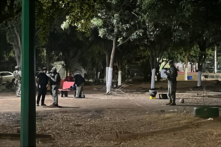 Elementos del Ejército Mexicano y de la Policía Estatal Preventiva se encargaron de asegurar la zona en donde fue hallado el joven sin vida y se desplegaron para vigilar el área.