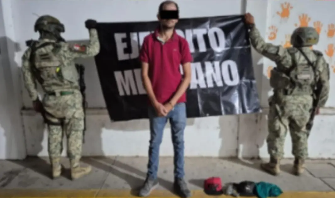 CULIACÁN. _ Personal del Ejército Mexicano detuvo en Culiacán a un civil por su presunta responsabilidad en el asalto a una tienda de autoservicio, acción en la que se aseguró una réplica de arma de fuego y dinero en efectivo.