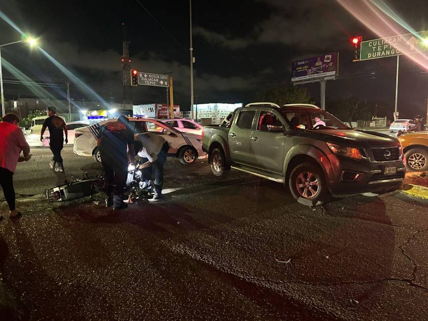 Motociclista choca contra un auto y lo arrolla una camioneta en Mazatlán