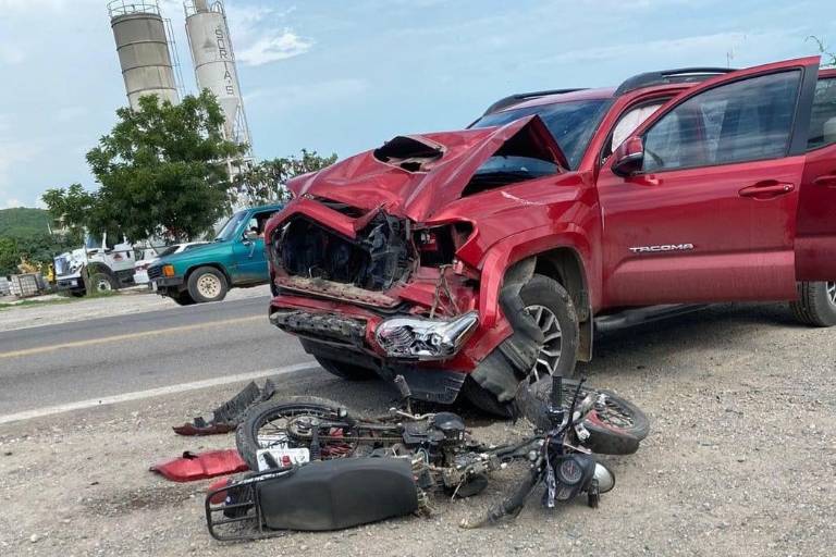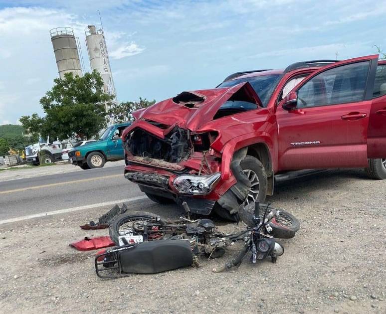 Al parecer, el motociclista chocó de frente contra una camioneta Toyota Tacoma que invadió su carril y quedó en estado de shock por sufrir el desprendimiento de una extremidad inferior.