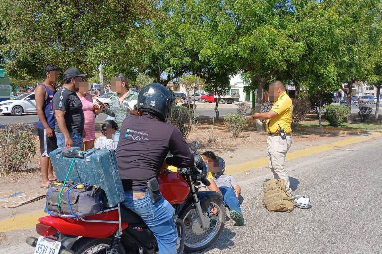 MAZATLÁN._ Un motociclista y una automovilista protagonizaron un choque la tarde de este jueves en el crucero de las avenidas Jacarandas y Joaquín Escobar, frente al mercado Hacienda Victoria, en Villa Verde.