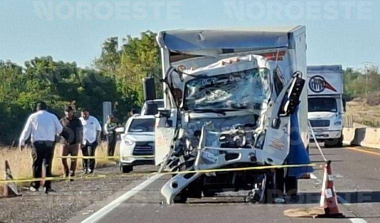 ELOTA._ El conductor de un camión murió prensado en la cabina de su unidad tras impactarse por alcance contra la caja de un tráiler, cuando circulaba rumbo al sur en la autopista Mazatlán-Culiacán.