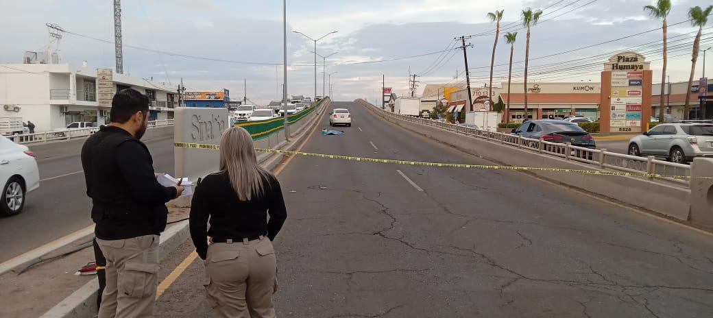 La víctima, de entre 25 y 30 años, aparentemente intentó cruzar el puente, pero fue embestido por un vehículo Chevrolet Beat color blanco.