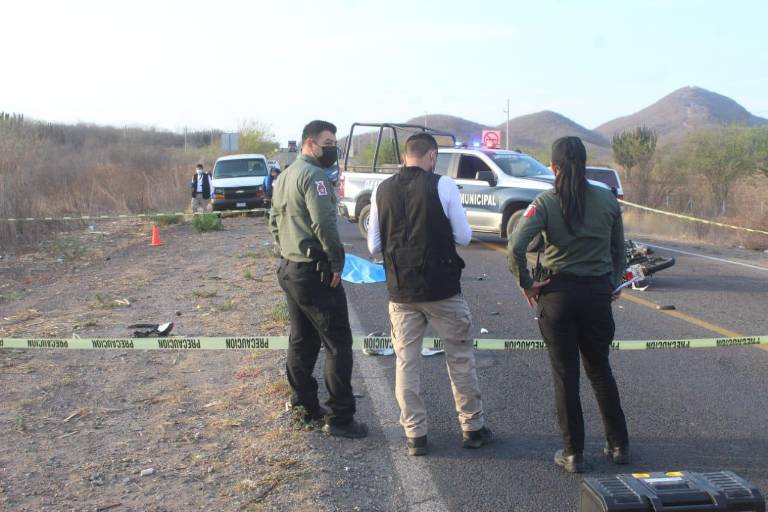 Las autoridades informaron que el reporte lo recibieron a las 5:30 de la madrugada, localizando al occiso tirado, de costado, arriba de la carretera y a un lado del cuerpo la motocicleta Itálika blanca con placas de Sinaloa en la que viajaba el ahora occiso.