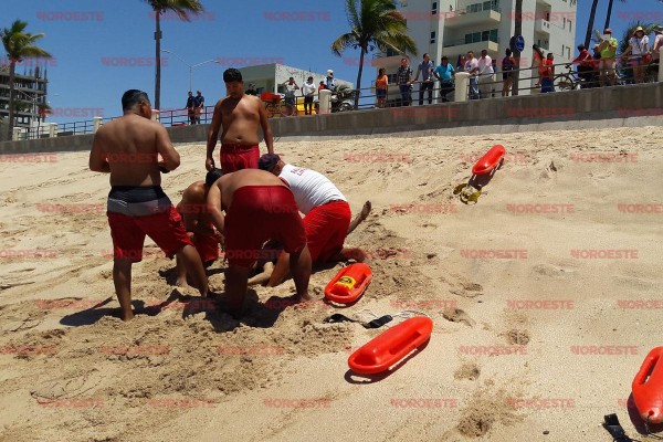 MAZATLÁN._ Un hombre perdió la vida por una probable congestión alimenticia que sufrió cuando nadaba en el mar, frente a la Avenida del Mar, entre las avenidas De Los Deportes e Insurgentes, donde fue sacado del agua por elementos del Escuadrón de Salvamento Acuático de la Policía Municipal.