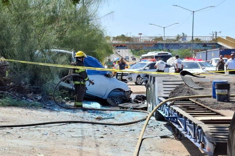 MAZATLÁN._ El aparatoso choque de un auto contra la plataforma de un tráiler ocurrido la mañana de este domingo, cobró la vida de tres personas.